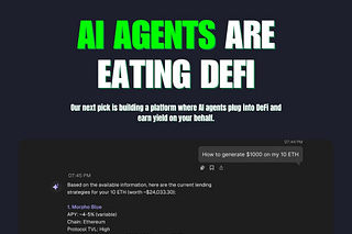 Our next pick is building a platform where AI agents plug into DeFi and earn yield on your behalf.