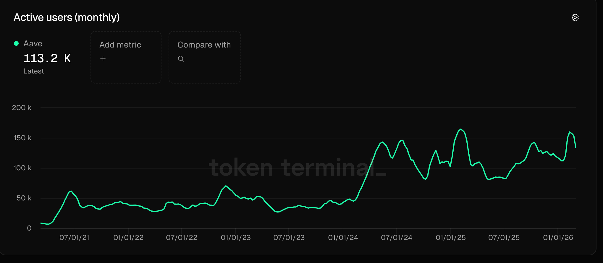 Aave hit roughly 159,000 monthly active users in February, an all-time high and nearly 2x growth in six months — and that matters because it signals something bigger than one protocol having a good month.