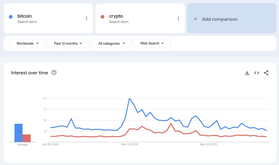 📉 Google searches for “Bitcoin” and “crypto” are super low.