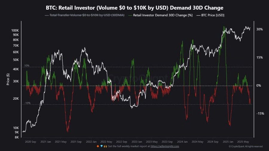 📉 Retail (small investor) demand is the lowest it’s been in 6 months.
