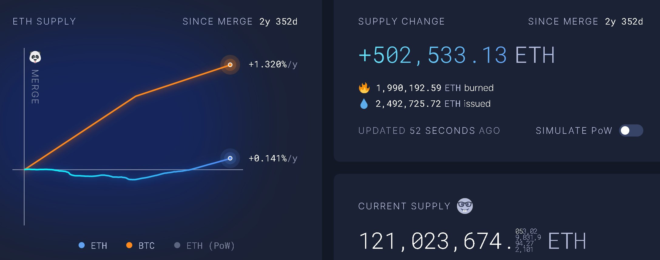 This means ETH is getting more scarce over time, especially as more ETH gets locked up in staking and DeFi.