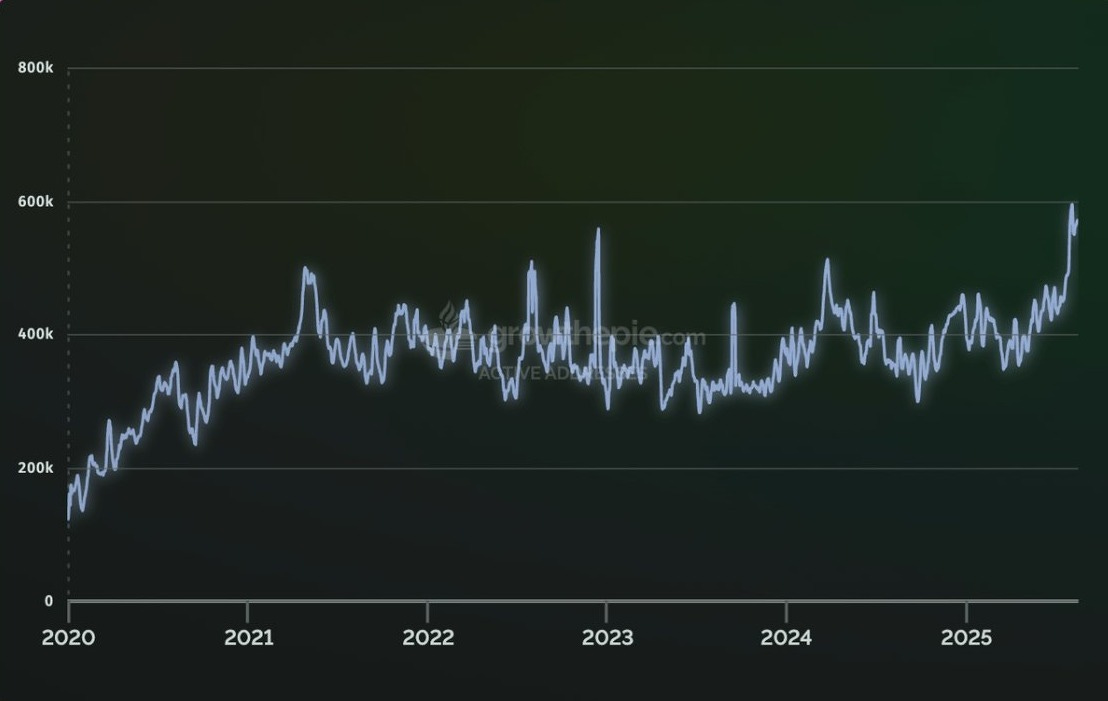 That’s millions of dollars in on-chain activity, fees, and network demand — even with ETH still down from its ATH.