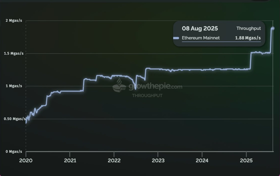 ⚙️ Throughput (gas per second): 1.88 million gas/sec — the network is maxing out on compute.