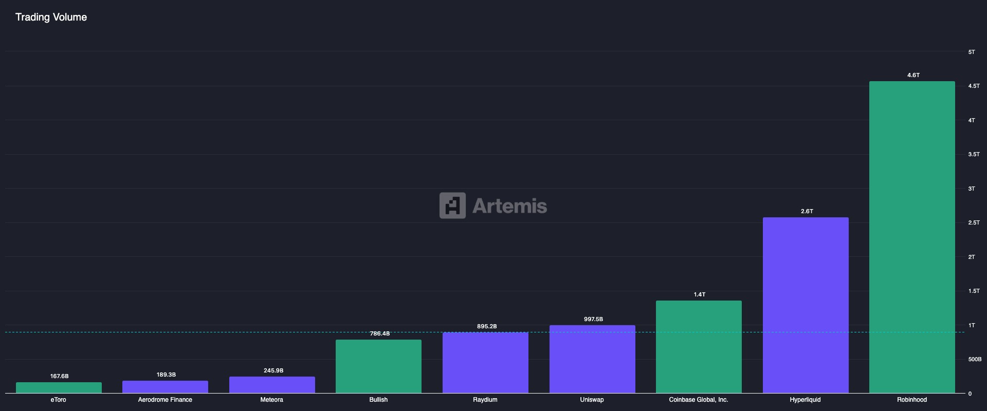Yes — an onchain exchange is doing ~2x Coinbase’s volume.
