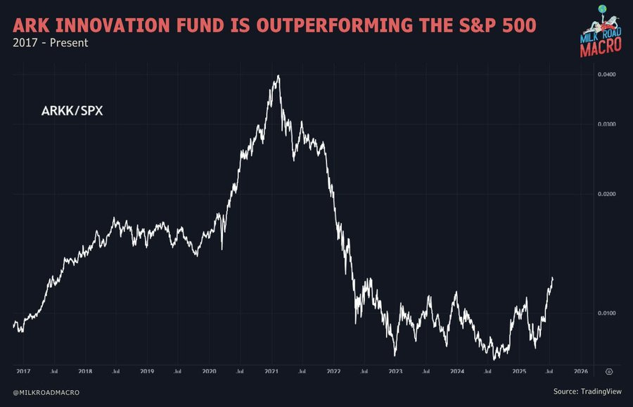 📈 ARK is outperforming the S&P 500 at a rate not seen since 2020/2021
