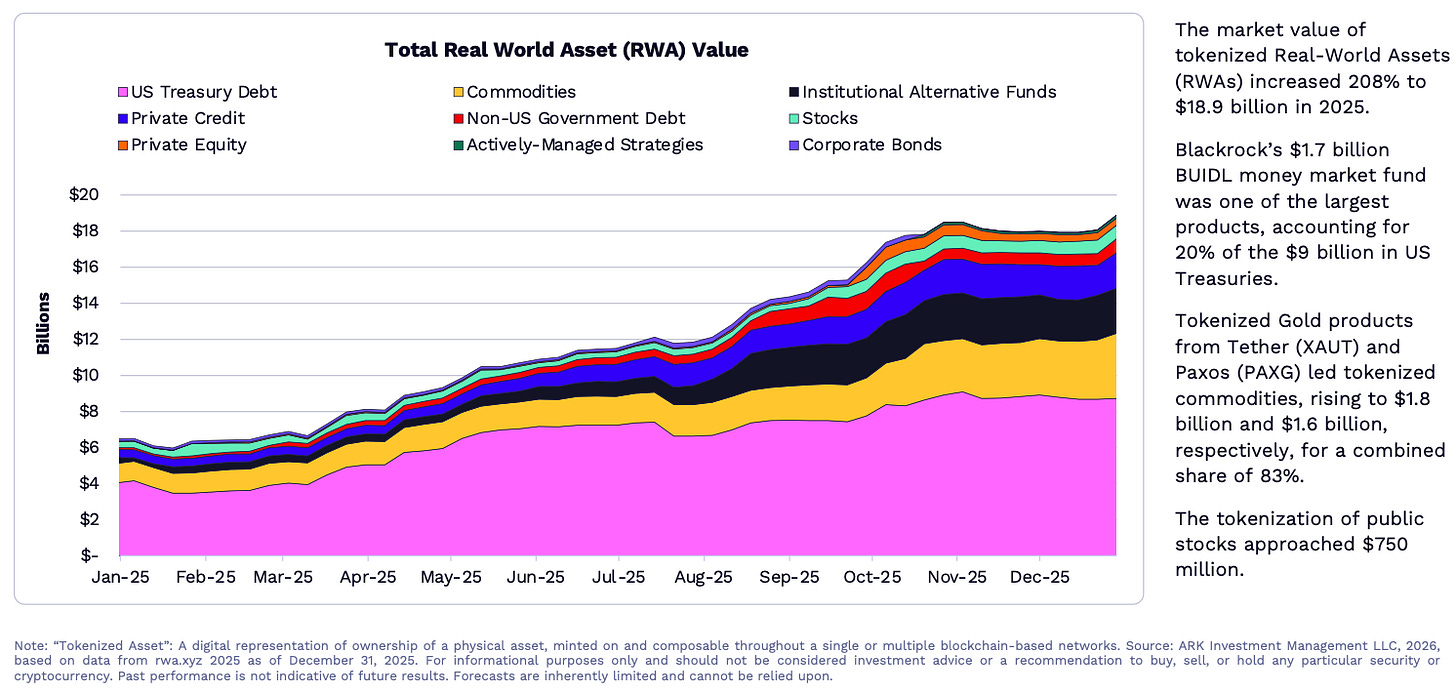 “Tokenized assets could transform the $260 trillion global asset base into programmable financial instruments.” – ARK