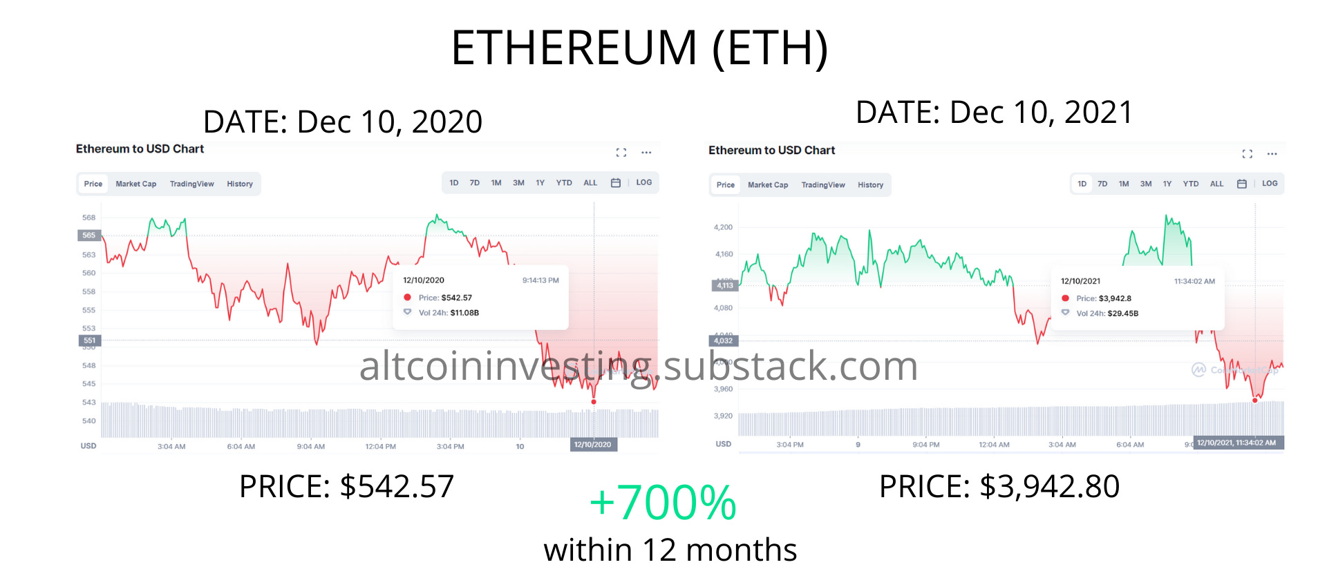 In the next section, we will look at the price of Bitcoin, Ethereum, and Litecoin within 12 months apart.