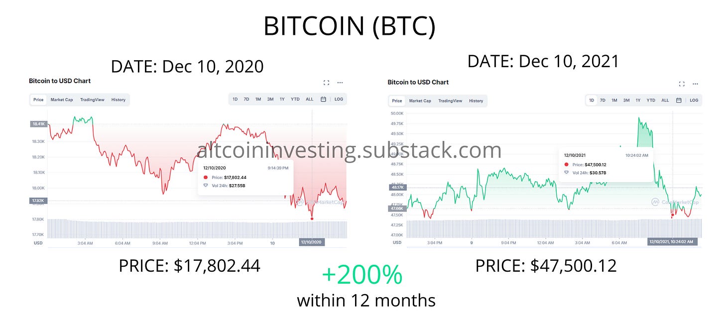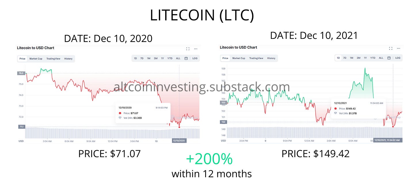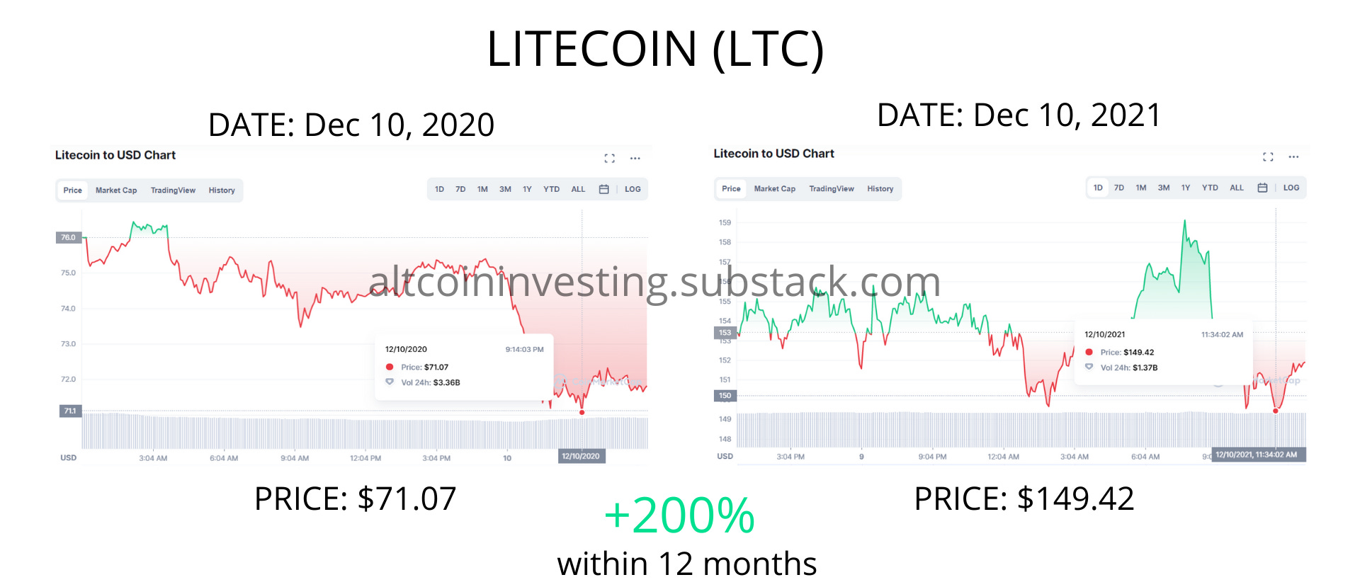 Looking at these charts, it’s clear that all 3 cryptocurrencies would have given over 100% return each within 12 months. That means if you invested $100 in either BTC, ETH, or LTC 12 months ago, today that same $100 will be worth more than $200 minimum.