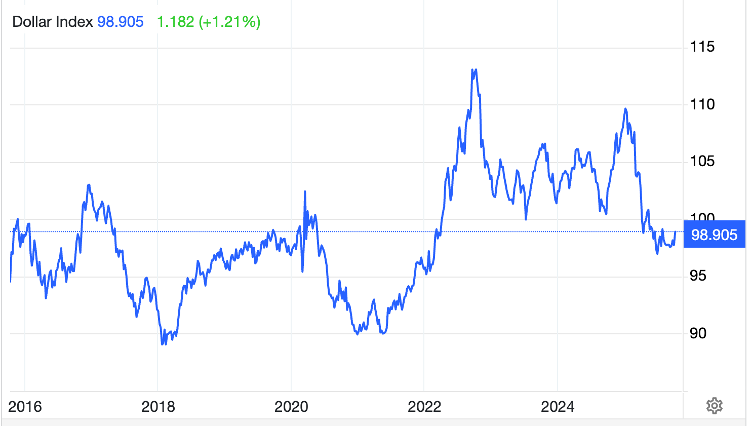 Dollar Index (DXY): 99 → Two-month low, trend softening