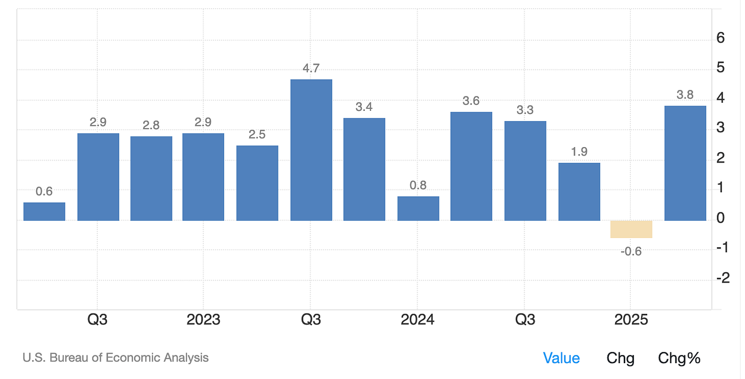 GDP Growth (QoQ): +3.8% → Resilient but could fade