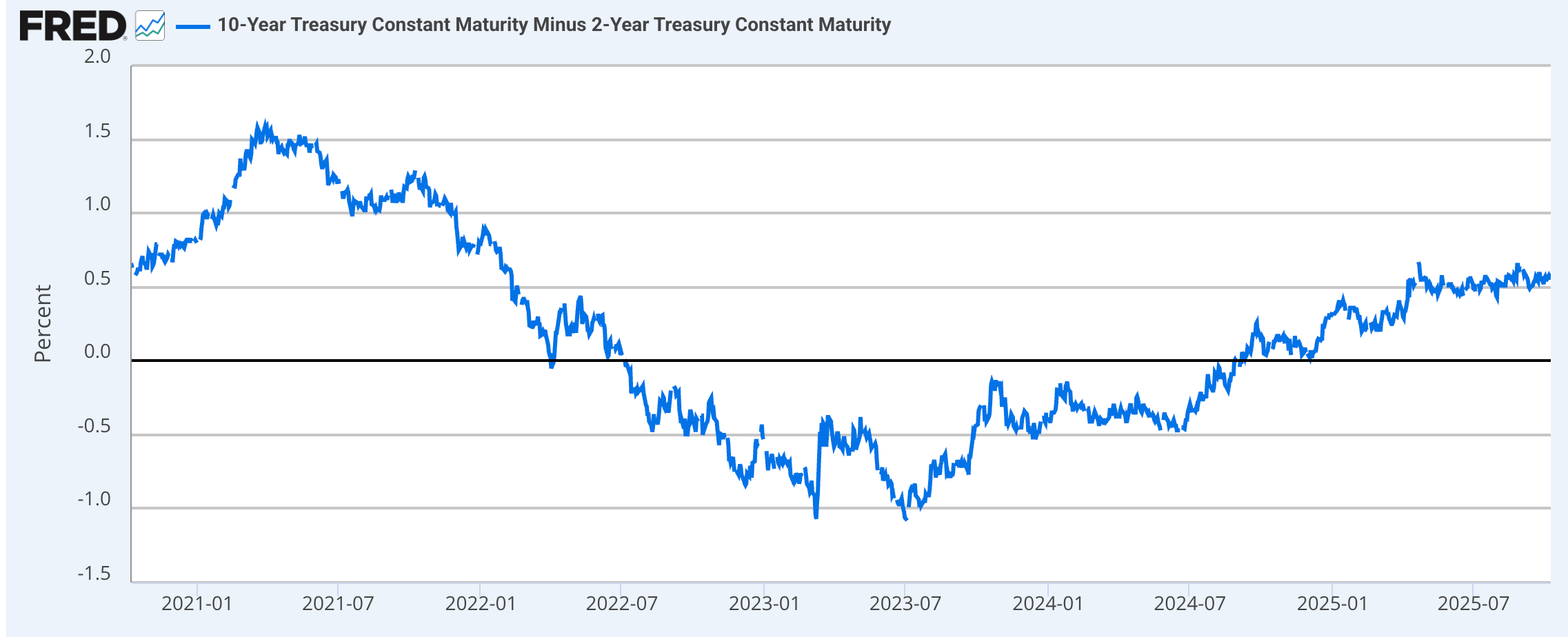 The 10Y–2Y yield curve has turned positive again (around +0.55%): it’s a less negative signal, but after a prolonged period of inversion, it’s wise to remain selective, as the economy could still cool in the coming quarters: