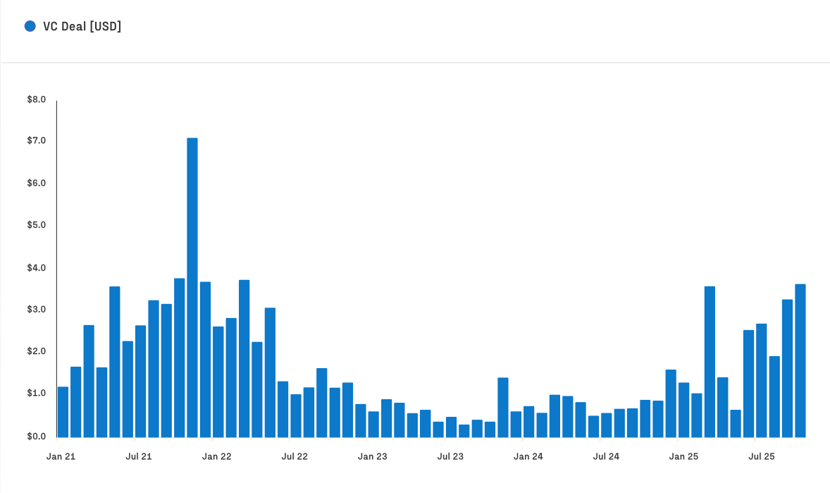 📉 VC activity tracks altcoins, and it’s drying up — except for Polymarket ($2B)