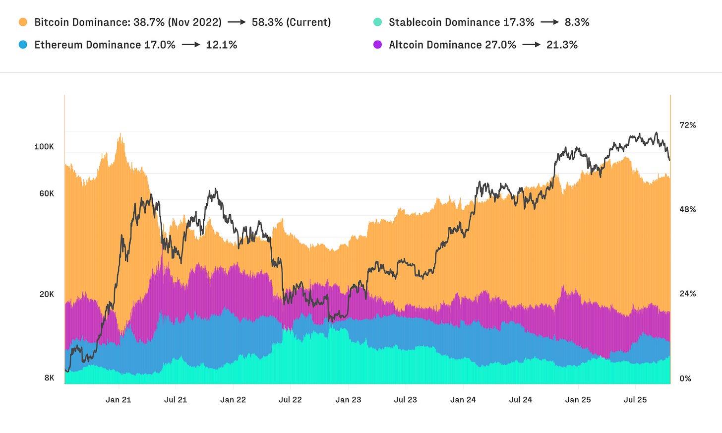 📈 Bitcoin dominance is at 58.3% — the highest since 2021