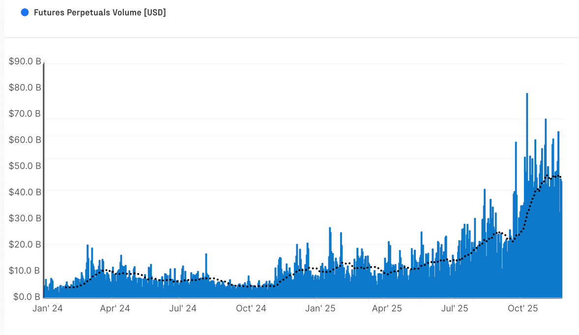 93% of volume comes from perpetuals — DEX perps now 20% of that!